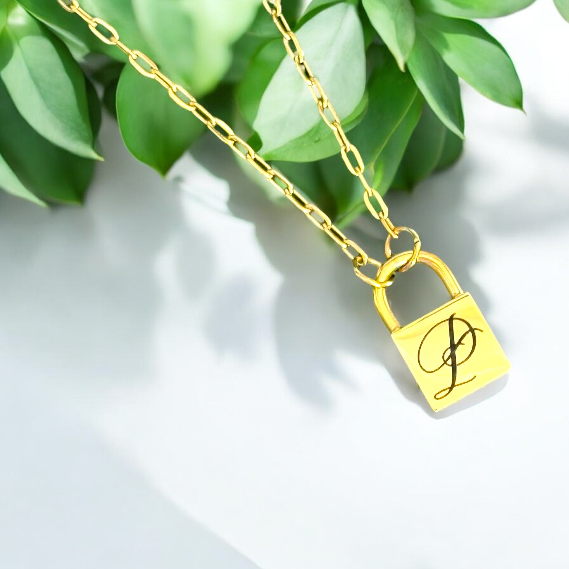 The sturdy paperclip chain links to a delicate lock charm — perfect for engraving a name, initial, special date, or meaningful symbol. Hypoallergenic, tarnish-resistant, and made to last, it’s your new everyday essential (or the perfect personalized gift).